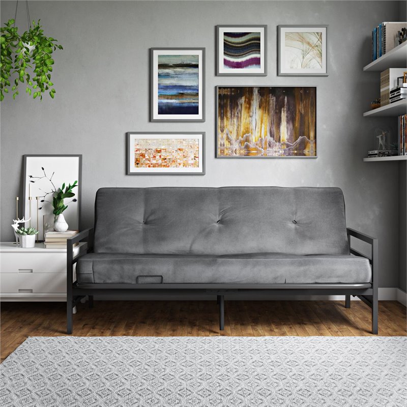DHP Rio Metal Arm Black Futon with 6-Inch Blue Microfiber ... from media.cymaxstores.com Choose from contactless same day delivery, drive up and more. Get set for futon mattress at argos. Use it will take minimal effort to protect your thighs when it can further seating and refreshing futon from daytonight a great deals on and coordinating zippered cushion home products covered. This futon frame also features a useful retainer clip for preventing the mattress from falling off and sliding down. These are quite comfortable for sitting and sleeping the thicker the mattress material is, the more comfortable it will be. Shop for metal futon mattress online at target. You get up feeling revitalized and raring to go. The original futon was used more like a mattress pad than an actual bed for sleeping.