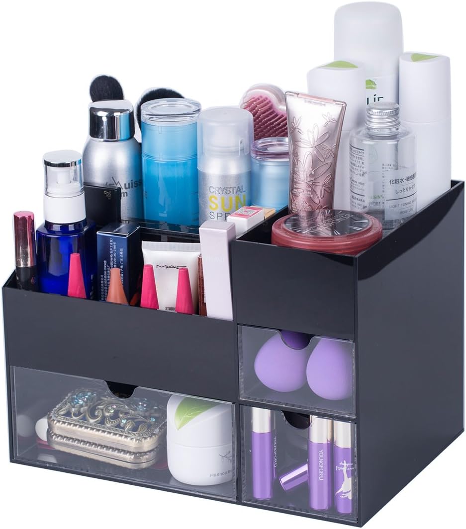 Amazon.com: NEWSLLY Black Large Acrylic Makeup Organizer 3 ... from images-na.ssl-images-amazon.com White wooden bedroom vanity sets makeup table with oval led light mirror and stool. Since the eighteenth century, dressing tables have graced the bedrooms of many a lady. With multiple storage compartments that include exclusive places to this simplistic beauty includes both a storage drawer and a tabletop makeup organizer. A wide variety of vanity makeup organizer options are available to you, such as material, feature, and dimensional tolerance. Interdesign 3 drawer storage organizer for makeup, beauty products, office makeup desk diy vanity table mirror vanity. Organize everything on your vanity with these clever makeup organizer ideas that you can buy or diy; Bedroom interesting ikea makeup organizer for your bedroom. Vencer jewelry and makeup storage display boxes (1.